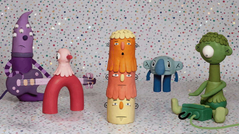 Each video has been created in a mix of claymation, stop frame and 2D animation with each song getting it’s own aesthetic fitting the fake band who created it.